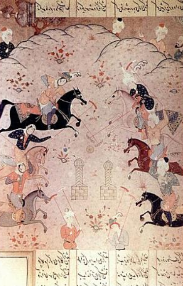 Если чуть сдвинуть фокус от «тепика», проступит более широкий исторический фон. Средневековая Евразия знала и другие командные игры. При дворах Темуридов и последующих династий были популярны конные забавы — прежде всего човган, предок современного поло. На персидских и тюркских миниатюрах XV–XVI веков, представленных в зале Второго Ренессанса, всадники стремительно несутся по полю, пытаясь клюшками направить мяч в условную «зону».
