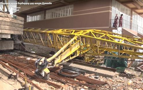 На окраине Душанбе секция башенного крана, использовавшегося на стройке, обрушилась на соседний жилой дом. Об этом сообщает «Озоди». Были повреждены несколько квартир, но обошлось без человеческих жертв.